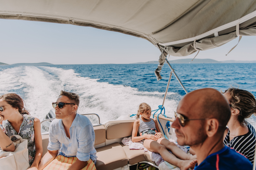船長依照海象將輕快艇駛往亞德里亞海三座島嶼,首先造訪英國泰晤士報評選為克羅埃西亞五顆隱藏珍珠之一的克爾克尼亞斯(Krknjaši)海灘,是達爾馬提亞海岸的著名藍色瀉湖。海岸湖泊呈現晶瑩剔透的碧綠藍色海水,無論游泳、浮潛、享受日光浴都是最棒處所!