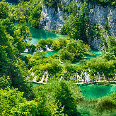 前往絕世美景十六湖國家公園之前,先品嘗克羅埃西亞傳統著名鱒魚午餐。接著驅車前往原名為普列提維切湖的十六湖國家公園,由16座湖泊及無數瀑布組成,1979年列入世界遺產,CNN評選為一生必去15大絕美奇景!是石灰岩與水蝕從萬年前次冰河時期到現在持續交互作用、所產生的喀斯特地形,更是克羅埃西亞最饒富盛名的絕美仙境。公園以海拔高度分為上、下湖區,上湖有著茂密森林與奔騰瀑布的石灰岩山谷,下湖則是矮灌木叢及淺小優閒湖區。藍綠湖水與乳白湖底岩石,高低比鄰的瀑布湖泊與周遭山林,形成四季皆動人心弦的璀璨風景畫。