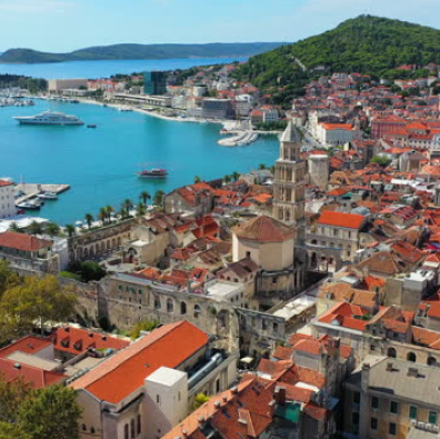 史普利特,是克羅埃西亞第二大城市,達爾馬提亞地區第一大海港,午餐最令人期待的就是當地新鮮魚貨所特製的海鮮風味餐。該城歷史超過1700 年,因三世紀羅馬帝國最偉大軍人皇帝戴克里先,為其退位養老修築「戴克里先皇宮」於此處而聞名,是羅馬帝國在世界上唯一尚存的皇宮遺址,1979年列入世界文化遺產。皇宮四方有四座金、銀、銅、鐵防禦城門,金門外是最著名的教皇寧斯基雕像,觸摸主教大腳趾就能獲得好運,而銀門外則是熱鬧的手工藝品攤商與露天市集。
