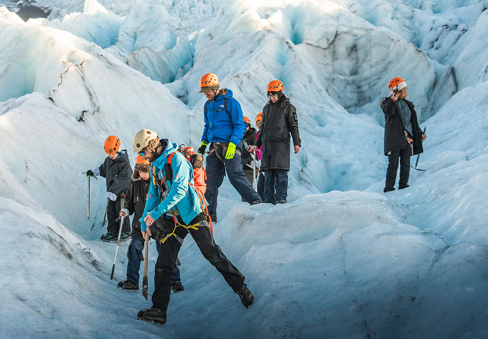 冰島的冰川活動全年皆可進行,夏季的冰川不會完全融化,而是因氣溫上升,冰川表面可能變得較濕滑,但內部結構仍然穩定。專業的冰川嚮導會選擇安全的冰川區域,並提供專業裝備,如冰爪、登山杖、安全繩索等,確保旅客能夠安心體驗冰川健行。