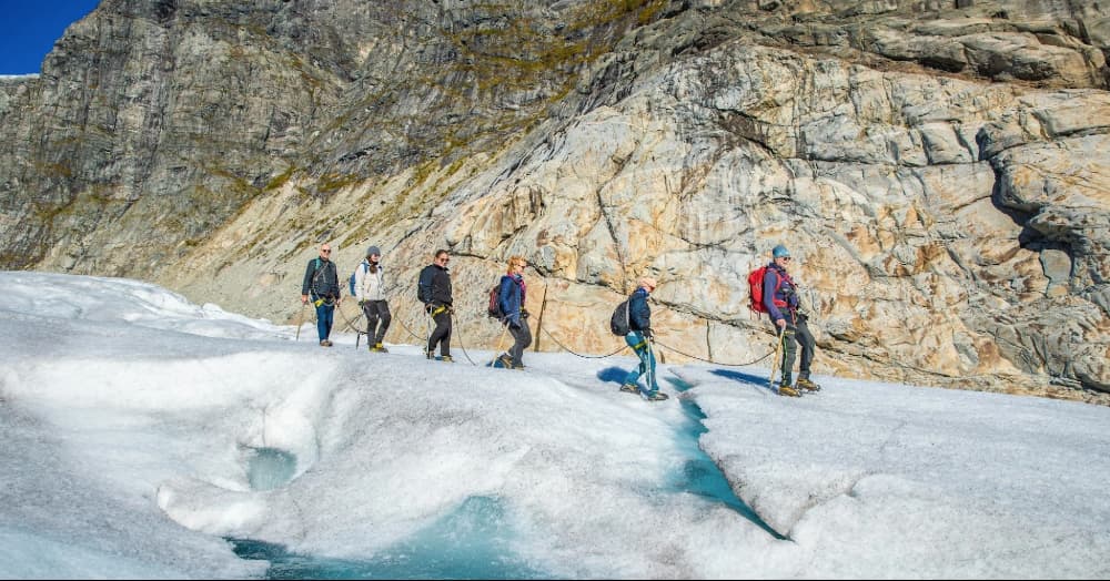 獨家前往挪威冰河國家公園,展開一場冰河艇探險與冰川健行體驗。不同於布利斯達爾(Briksdal)冰河僅能遠觀冰舌,尼加德冰川(Nigardsbreen)是挪威最壯觀的冰河冰臂之一。我們將搭乘冰河船前往冰川前緣,在專業教練帶領下,踏上歷時3-4小時的冰川健行旅程,雙腳踩上真實冰層,走入歐洲大陸最大冰河的藍色裂縫之中,親歷北歐最震撼的世界級奇景。